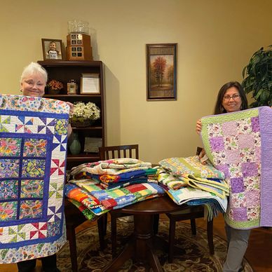 How we help: QGSC members make baby quilts to be given to new mothers or families at the time of services with FPRC. Quilts width should be between 30" - 45" and length should be between 40" - 55".